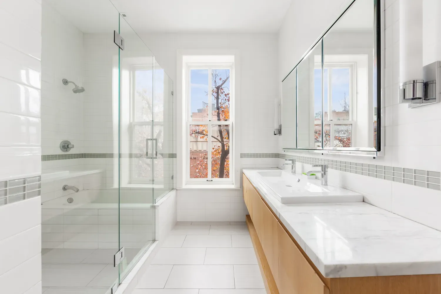 Positioned among neighboring townhouses, 214 West 11th Street treats its residents to picturesque views of the historic streets and architecture that define the West Village. Its corner lot location provides an exceptional vantage point, offering breathtaking views of midtown, the Village, and the World Trade Center, rivaling the grandeur of the city's most luxurious penthouses.